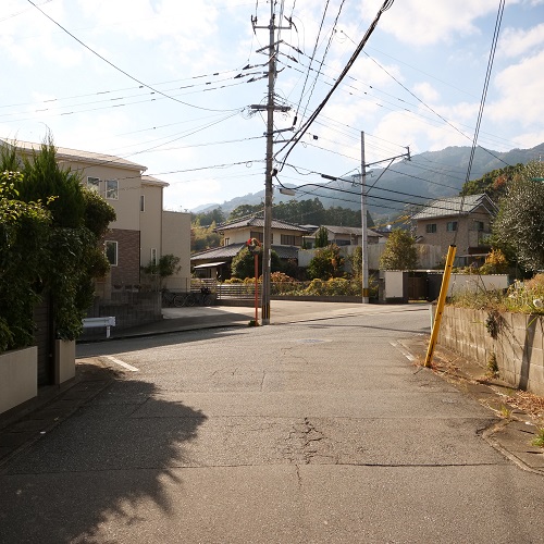 一本目の曲がり角を右折して、しばらく道なりに直進します。