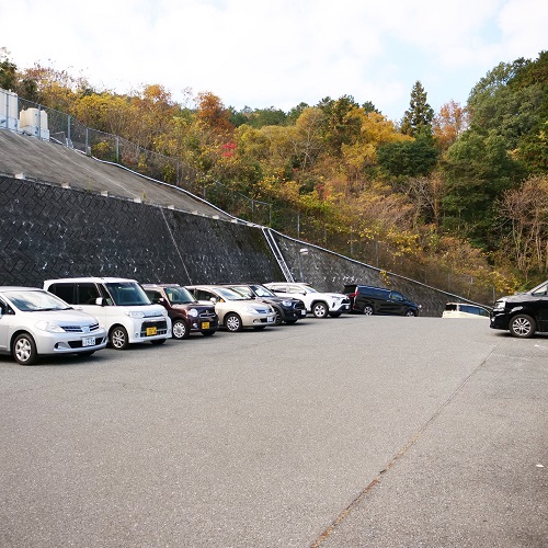 正面玄関を通過し、坂を上ったところに来客用駐車場がございます。